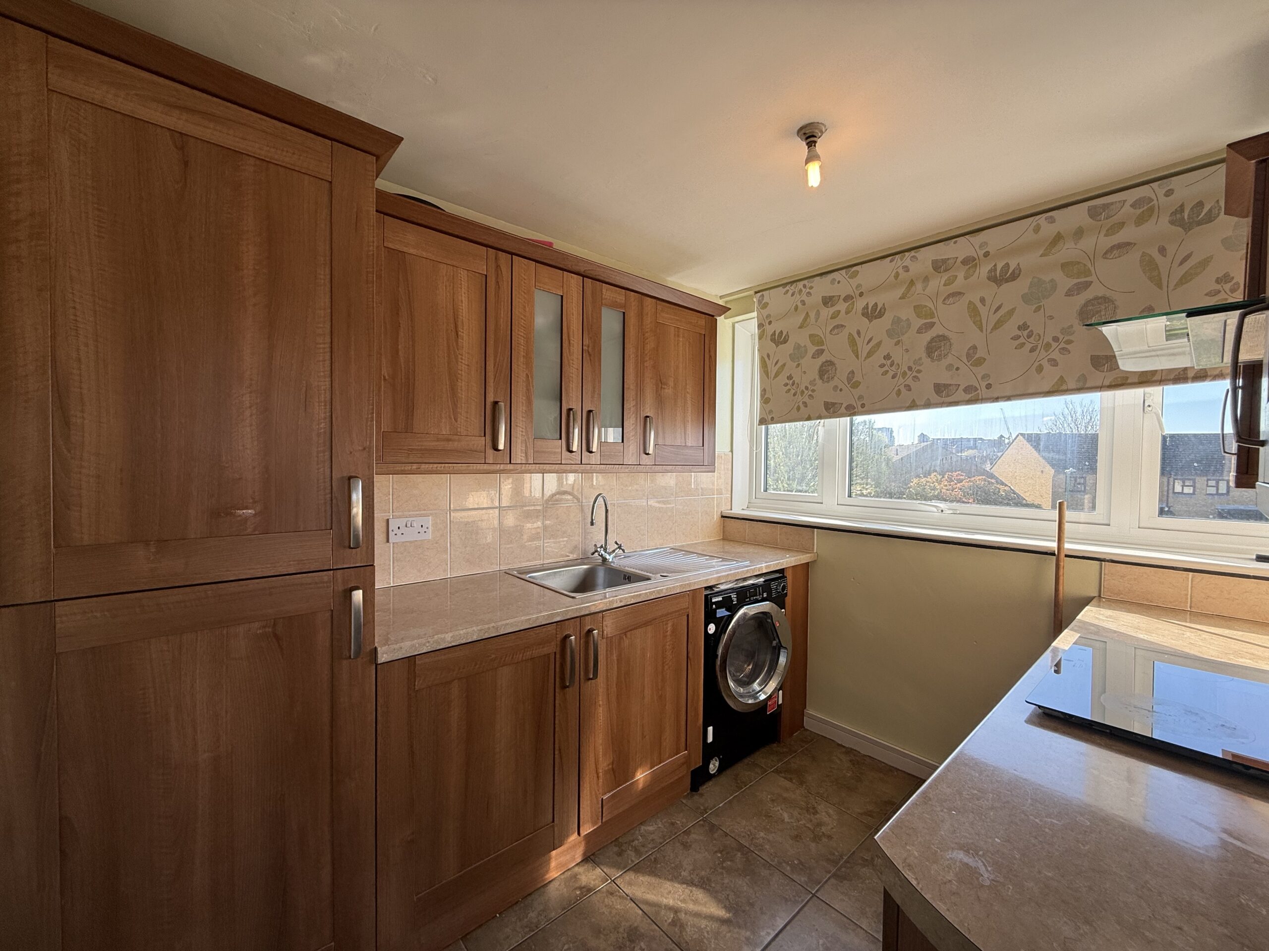 The accommodation comprises a welcoming entrance hall with useful built-in storage, leading into a spacious open-plan living room and kitchen—perfect for both relaxing and entertaining. The kitchen is well equipped with a range of fitted wall and base units, integrated appliances, and ample worktop space. The generous double bedroom includes built-in storage, while the bathroom is fitted with a modern suite including a bath with shower